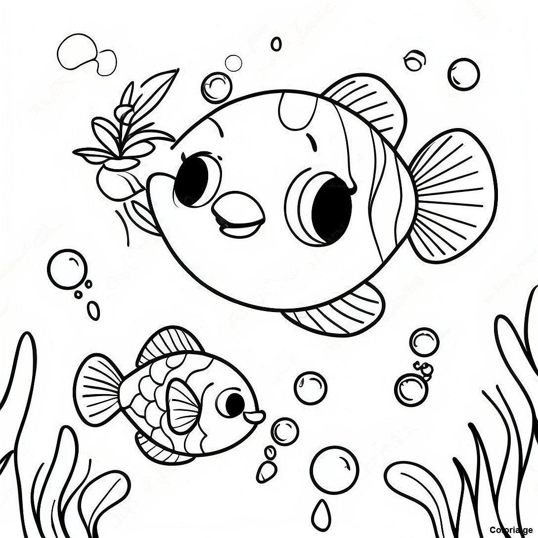 Page De Coloriage Du Poisson Arc-En-Ciel Heureux Avec Ses Amis