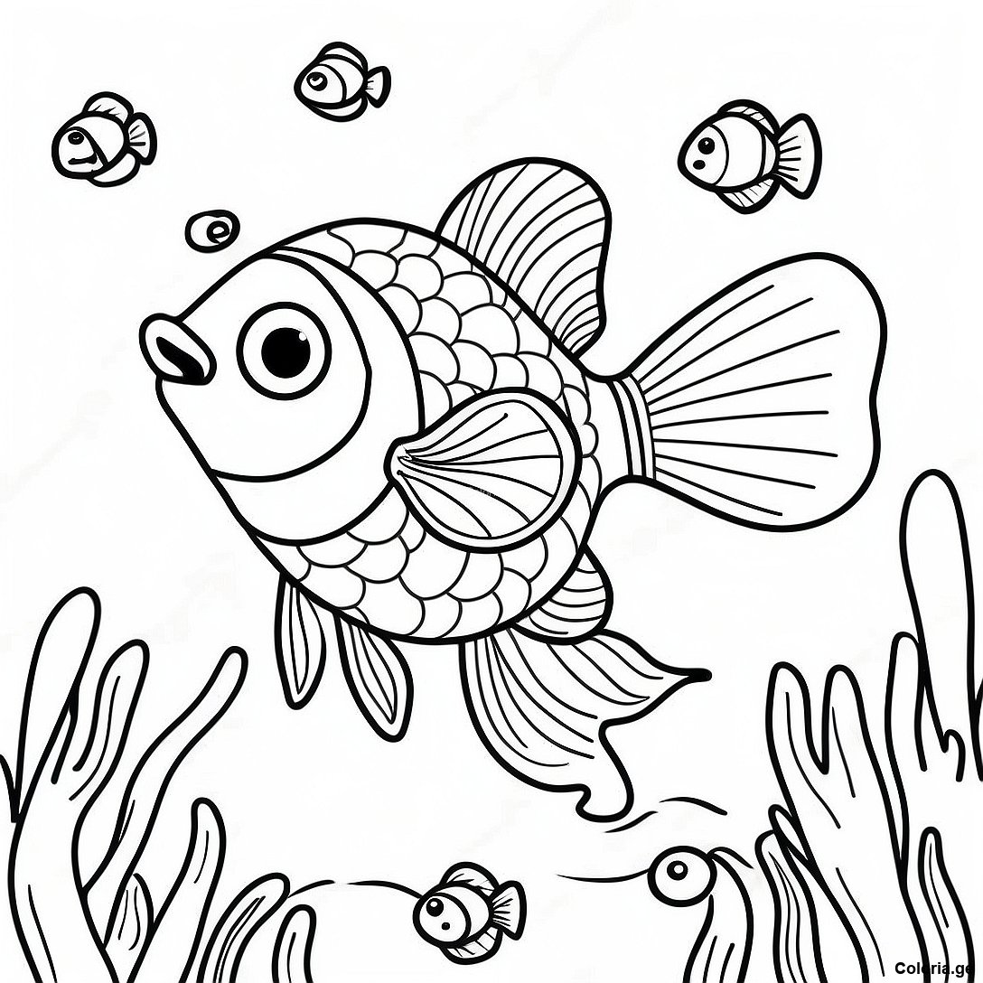 Page De Coloriage D'un Bar Vivant Nageant Sous L'eau