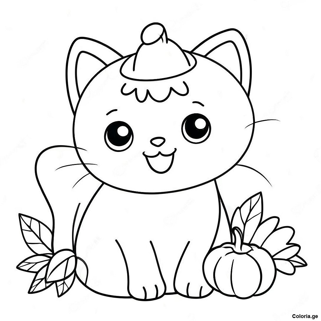 Page De Coloriage Dun Chat Mignon De Thanksgiving Avec Une Citrouille 136772 68475