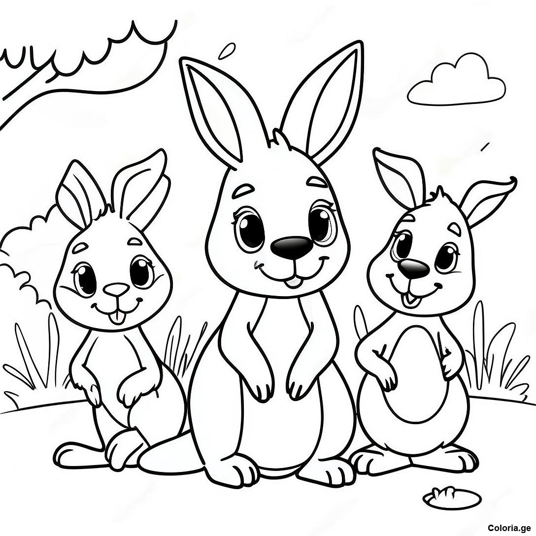 Page De Coloriage Dun Kangourou Mignon Et De Ses Amis