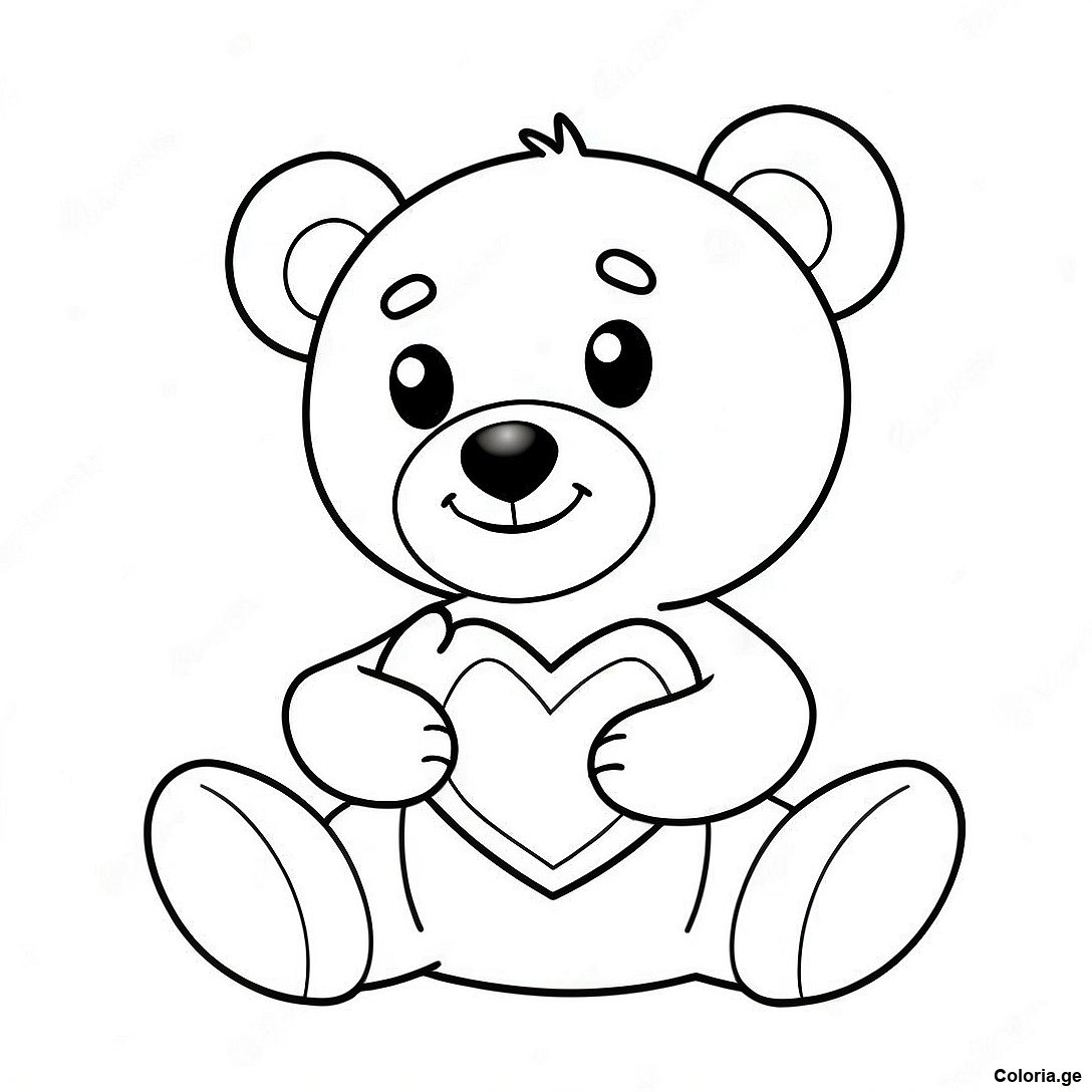 Page De Coloriage D'un Ours En Peluche Charmant Tenant Un Cœur