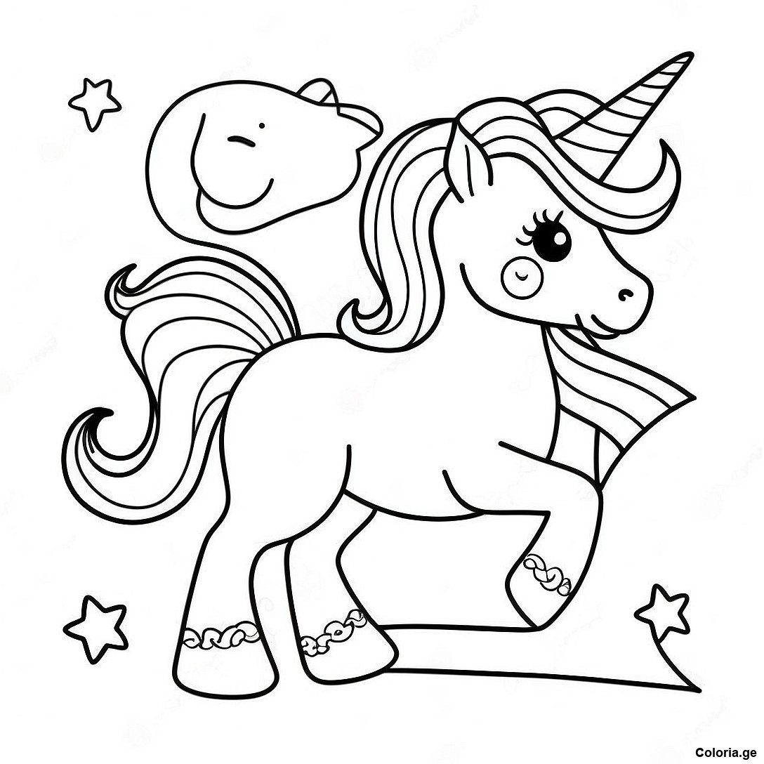 Page de coloriage d'alicorne mignonne avec une crinière étincelante