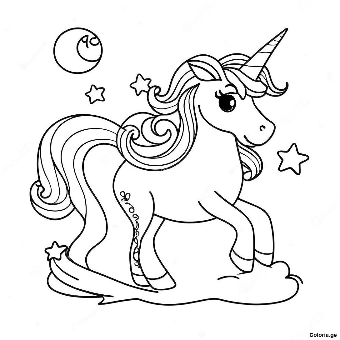 Page De Coloriage Dune Licorne Fantaisiste Avec Des Etoiles Et Une Lune 90250 30311