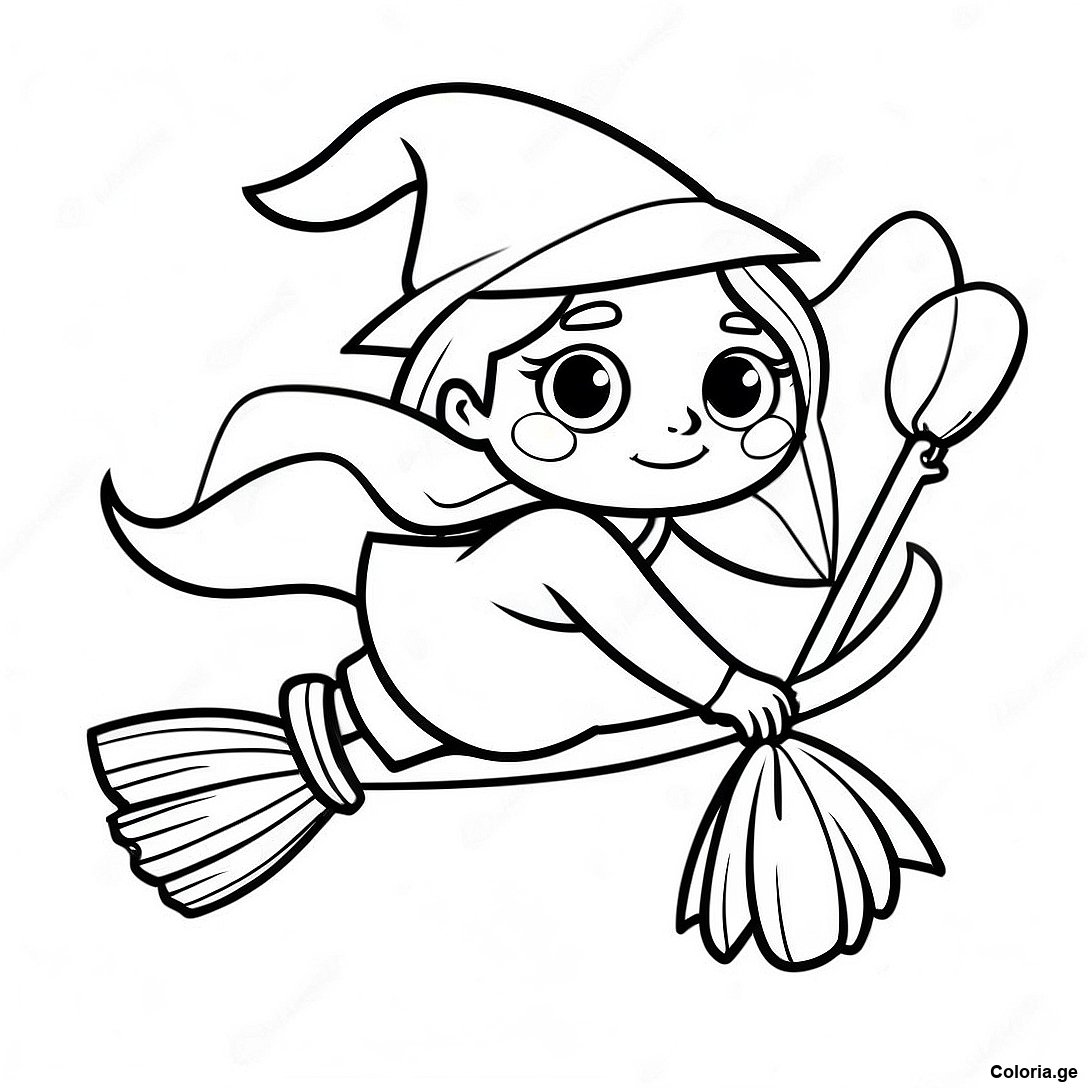 Page De Coloriage D'une Sorcière Mignonne Volant Sur Un Balai