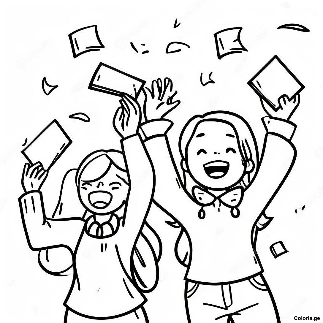 Télécharger le PDF imprimable de Page De Coloriage Étudiants Excités Lançant Des Chapeaux