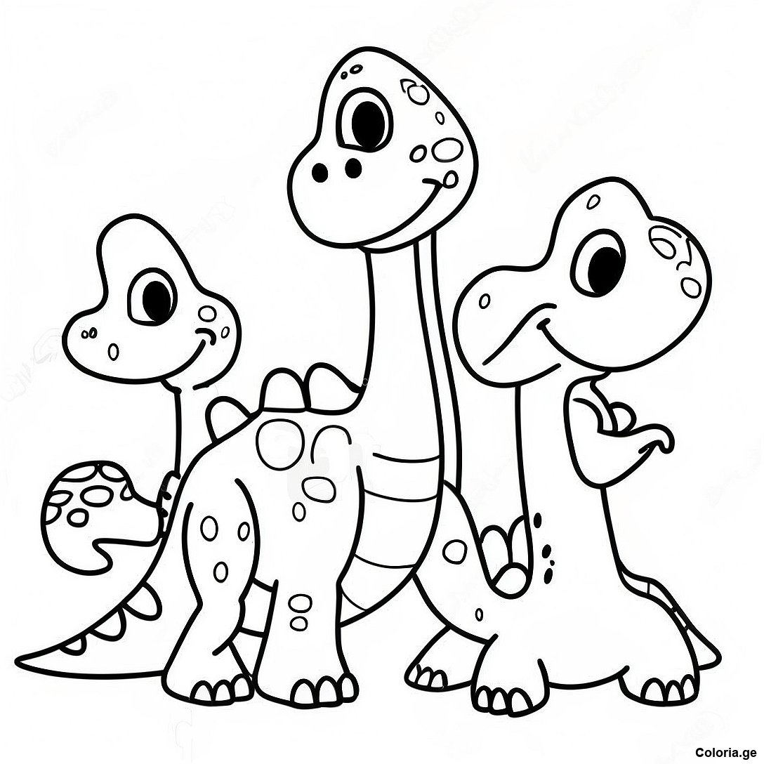 Télécharger le PDF imprimable de Page De Coloriage Famille De Dinosaures Amicale