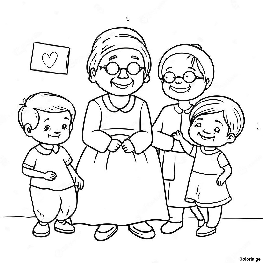 Page De Coloriage Grand-Mère Avec Ses Petits-Enfants