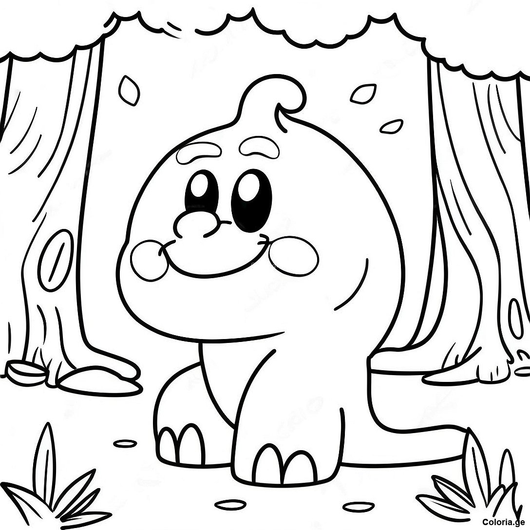Télécharger le PDF imprimable de Page De Coloriage Om Nom Dans Une Forêt