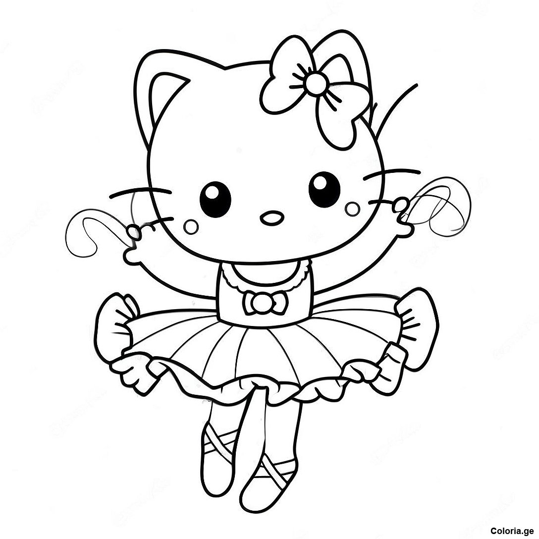 Pose Élégante De Ballerine Hello Kitty Page De Coloriage