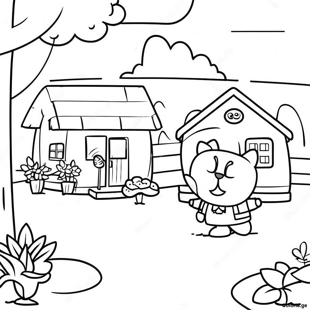 Télécharger le PDF imprimable de Scène Charmante De Village D'animal Crossing Page À Colorier