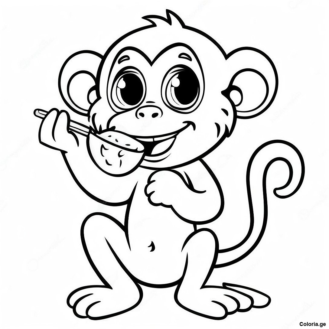Télécharger le PDF imprimable de Singe Drôle Mangeant Une Banane Page À Colorier