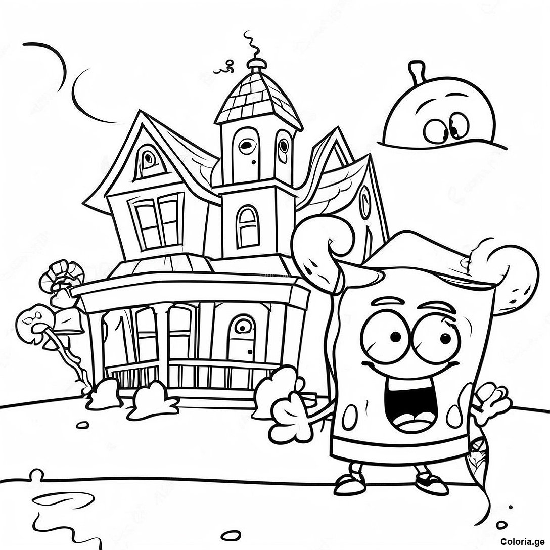 Télécharger le PDF imprimable de Spongebob Page De Coloriage De Maison Hantée