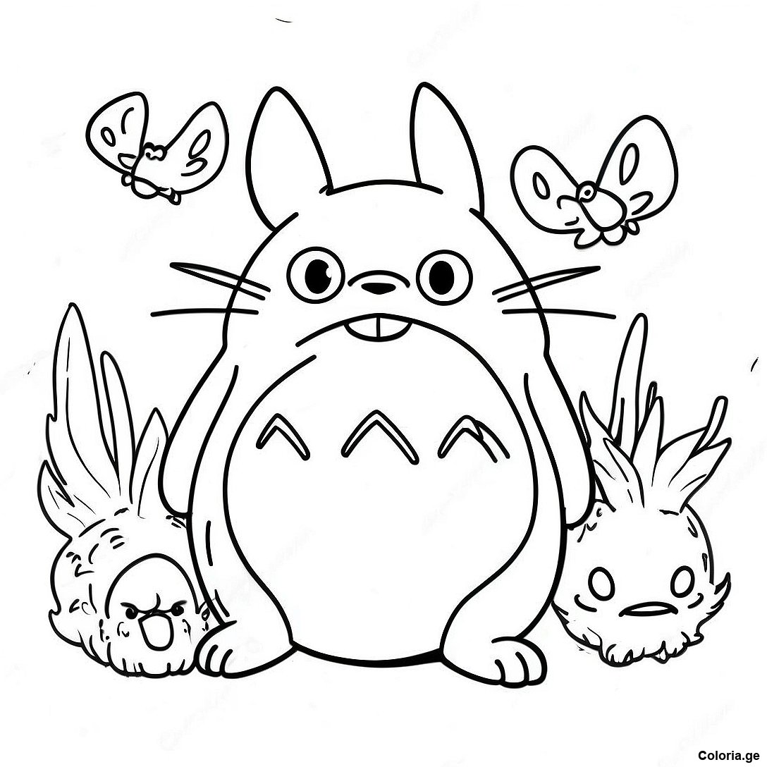 Télécharger le PDF imprimable de Totoro Avec Des Amis Page À Colorier